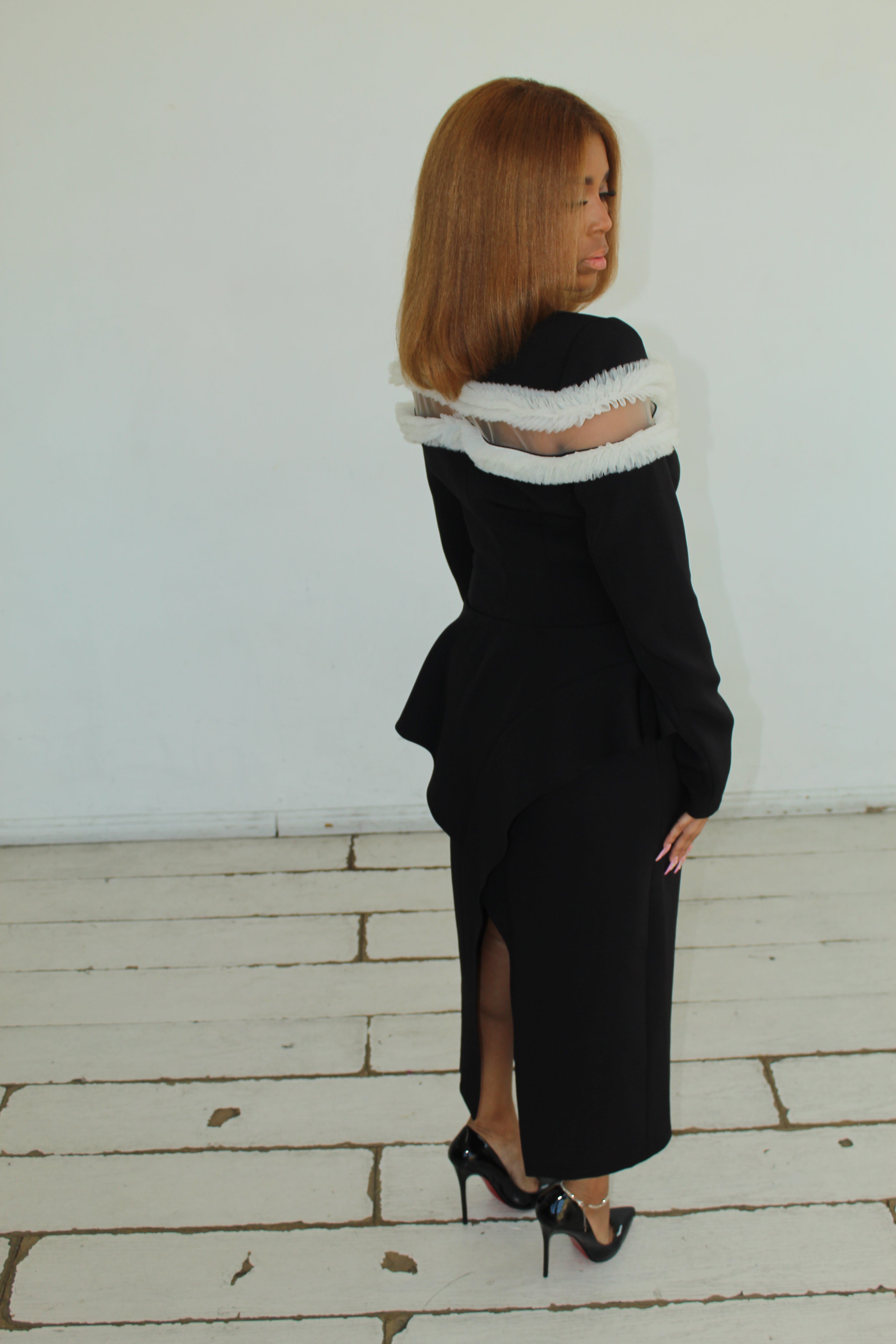 - Black with White Sheer Ruffle Detail