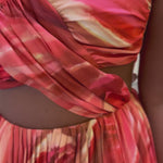 Our Ella Maxi Dress is so perfect! This stunning dress features a Bold Vibrant Red/Orange Print that resembles the sunset. Perfect for Spring/ Summer Season. Great for birthdays, brunches, or whatever you’re celebrating. Pair with sandals or heels. So elegant! Easily your new favorite Maxi.