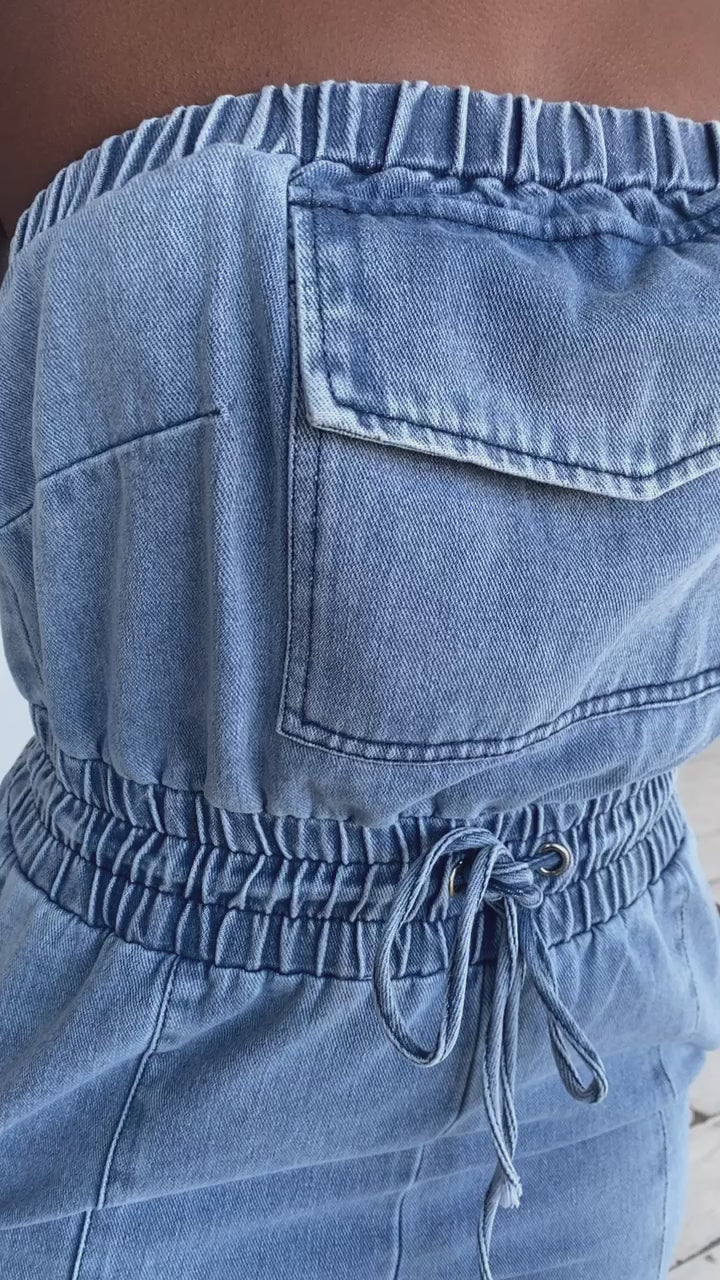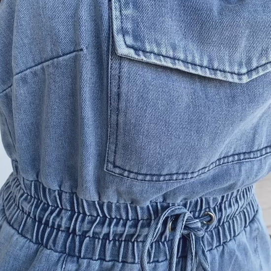 Don’t you just love a good Denim Jumpsuit?! Our "Kourtney Jumpsuit" is a must have! Such a unique look. Love the adjustable waist and cute pocket detail. She's cute worn with sneakers or heels. Don’t miss her!