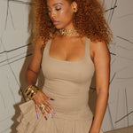 Kelly is that girl! She looks like a dress but has shorts underneath! Who doesn't love a good romper? Love the fit and she's great for all body frames. Snatches you in and can't resist the pleated details. Pair with your favorite boots for upcoming cooler season with a trench or fur. Can add an under shirt for other looks.