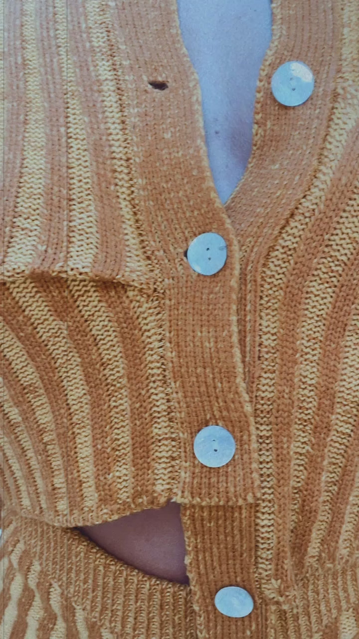 Top : Collard, Off Set Marble Buttons, Long Sleeves, Flare Wrist, Button detail at wrist and elbow.